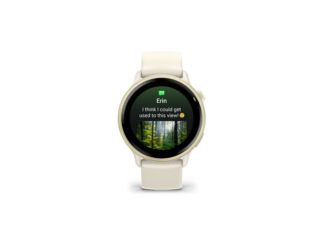 Po spárování s kompatibilním telefonem iPhone nebo Android můžete na hodinkách zobrazovat zprávy SMS, e-mailová upozornění a další oznámení. Na telefonech se systémem Android můžete na zprávy odpovědět také z displeje hodinek.