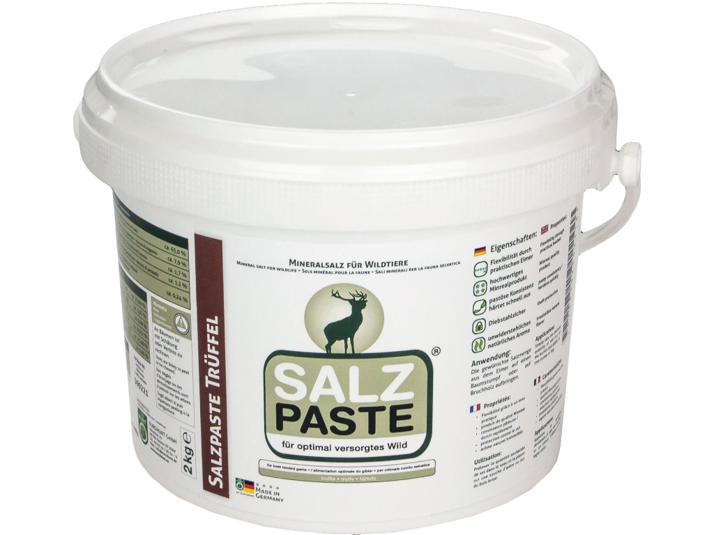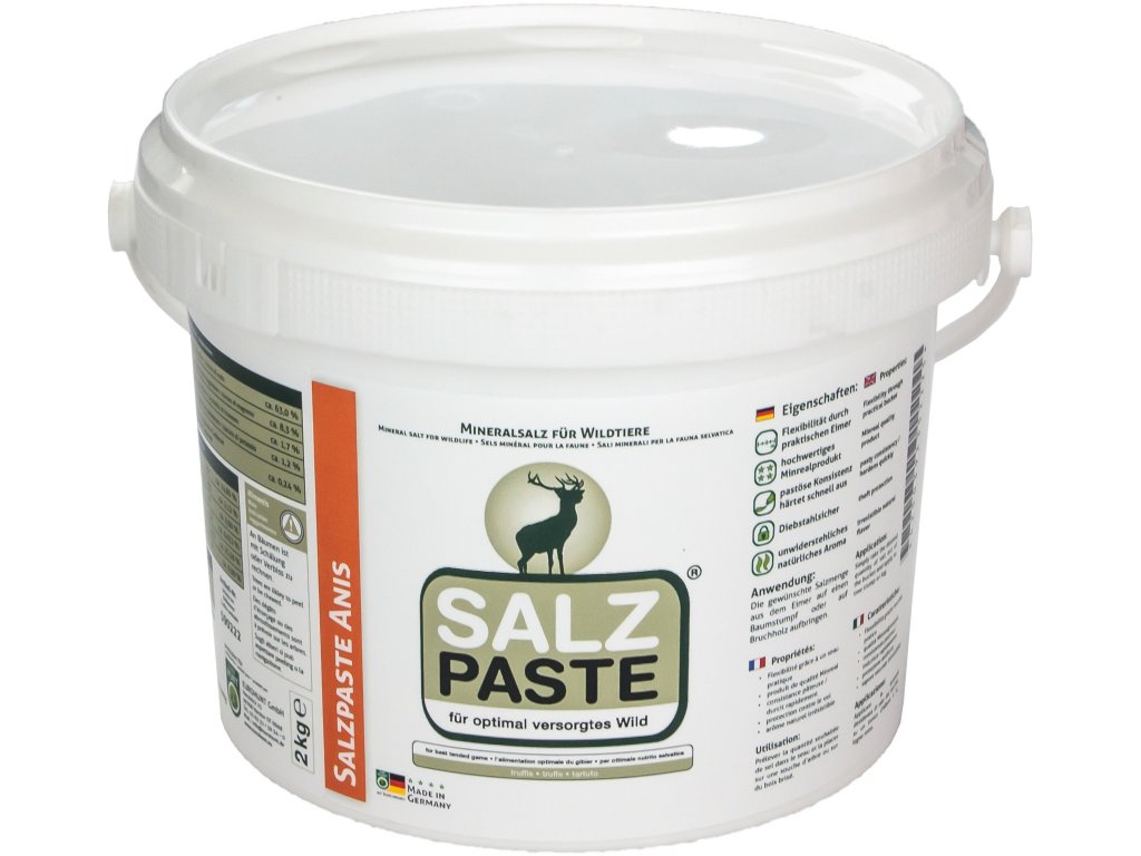 Solná pasta Eurohunt vám pomáhá zajistit optimální přísun solí a minerálů potřebných pro život divoké zvěře. Pasta je flexibilní a lze ji aplikovat v revíru podle potřeby. Díky své pastovité konzistenci se dá velmi snadno aplikovat v požadovaném množství například. na pařez stromu nebo na kmen polomového dřeva. Solná pasta Eurohunt při aplikaci pomalu tvrdne a je pak do značné míry chráněna proti krádeži. Praktická velikost balení usnadňuje nošení při procházce revírem. Obsah 2 kg.