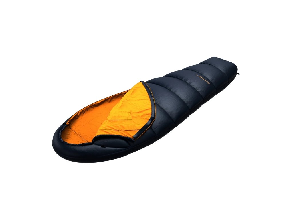 Anatomicky tvarovaný  spacák má jednou rukou ovladatelné stahování kapuce a vnitřní zateplovací límec s regulací. Obousměrný zip je kryt vyztuženou légou proti zadrhávání a izolační légou proti úniku tepla .