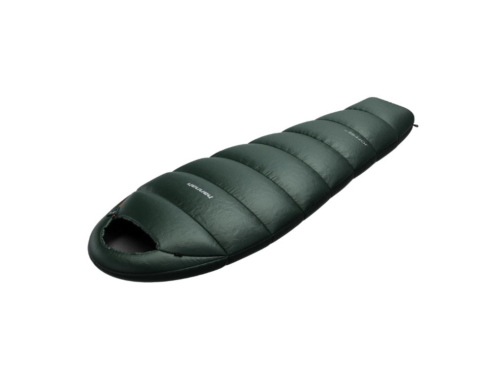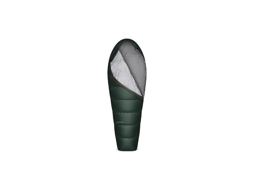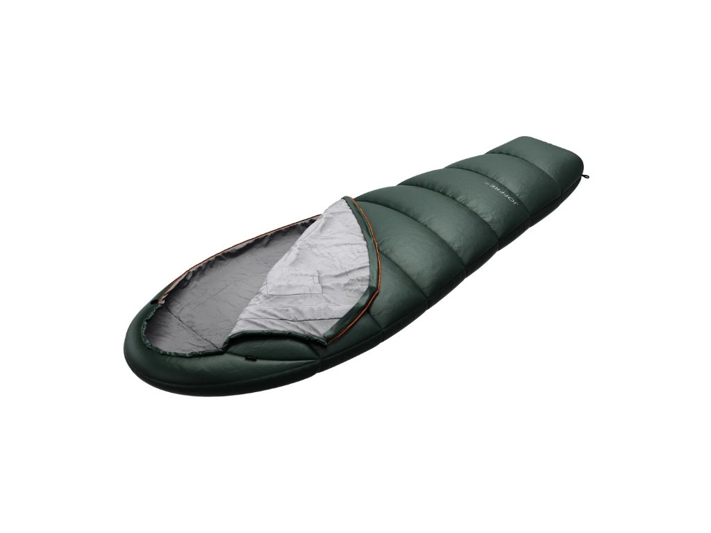 Anatomicky tvarovaný  spacák má jednou rukou ovladatelné stahování kapuce a vnitřní límec s regulací. Obousměrný zip je kryt vyztuženou légou proti zadrhávání a légou proti úniku tepla . Pojistka proti samovolnému rozepnutí zipu je u téměř všech našich modelů spacáků samozřejmostí.
