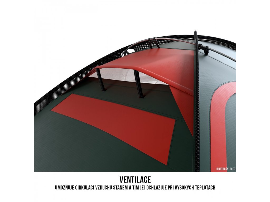 Jemný, průvzdušný a přece pevný materiál, z něhož je vnitřní síťová moskytiera vyrobena, umožňuje, aby vzduch uvnitř stanu lépe cirkuloval. Tím je zajištěno kvalitní odvětrávání.