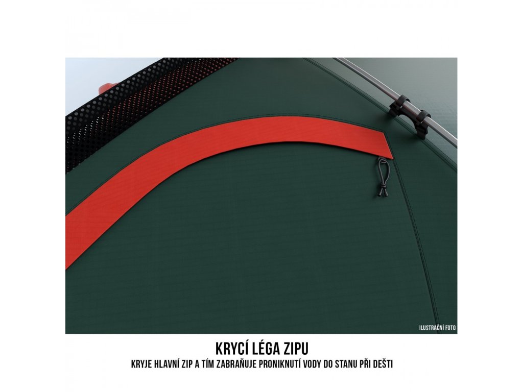 - Zátěr materiálů vnějšího stanu i podlahy z polyurethanu zabraňuje průniku vody.