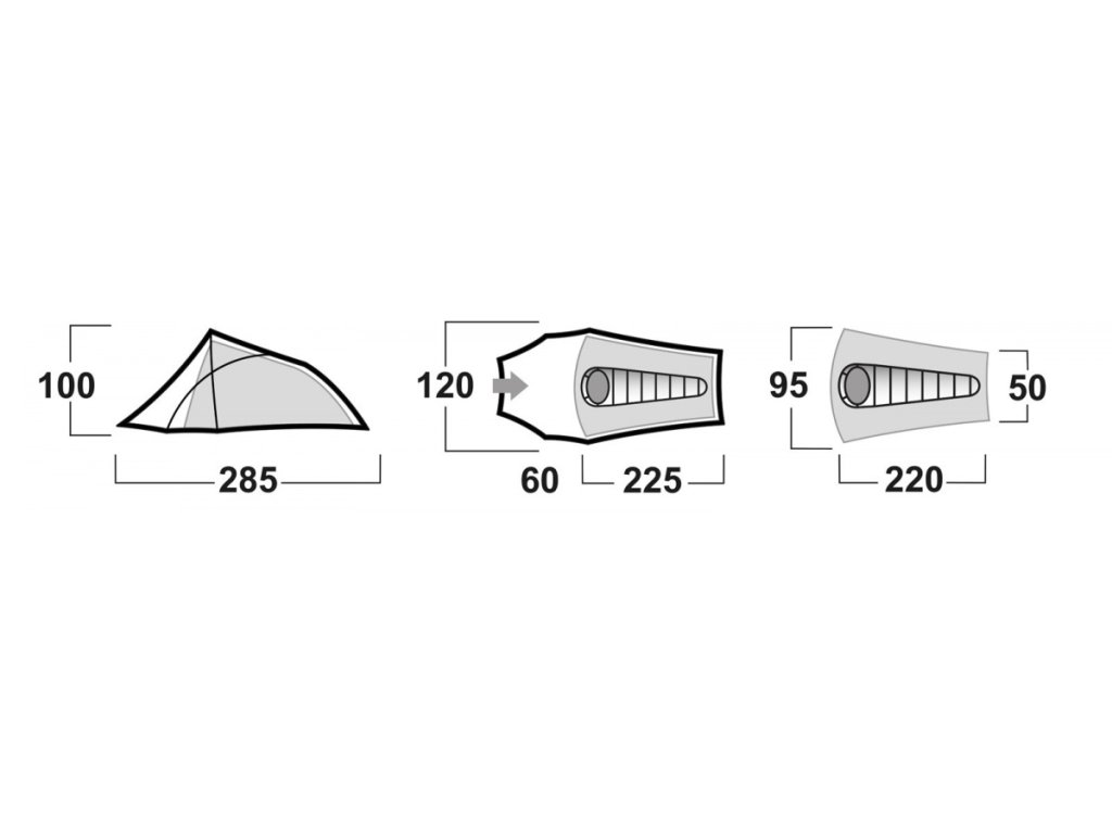 | Hmotnost | : min./celková 2,5 kg / 2,7 kg Konstrukce: dvouplášťový samonosný stan s vnější konstrukcí |
