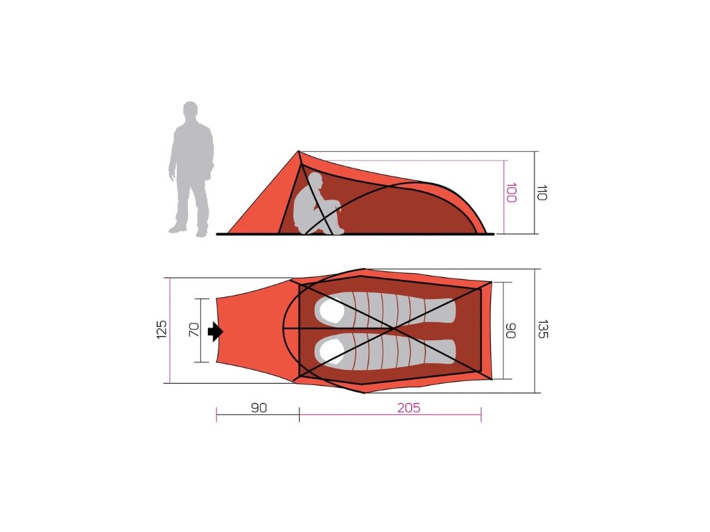 | Rozměr vnějšího stanu | 135 × 295 × 110 cm |