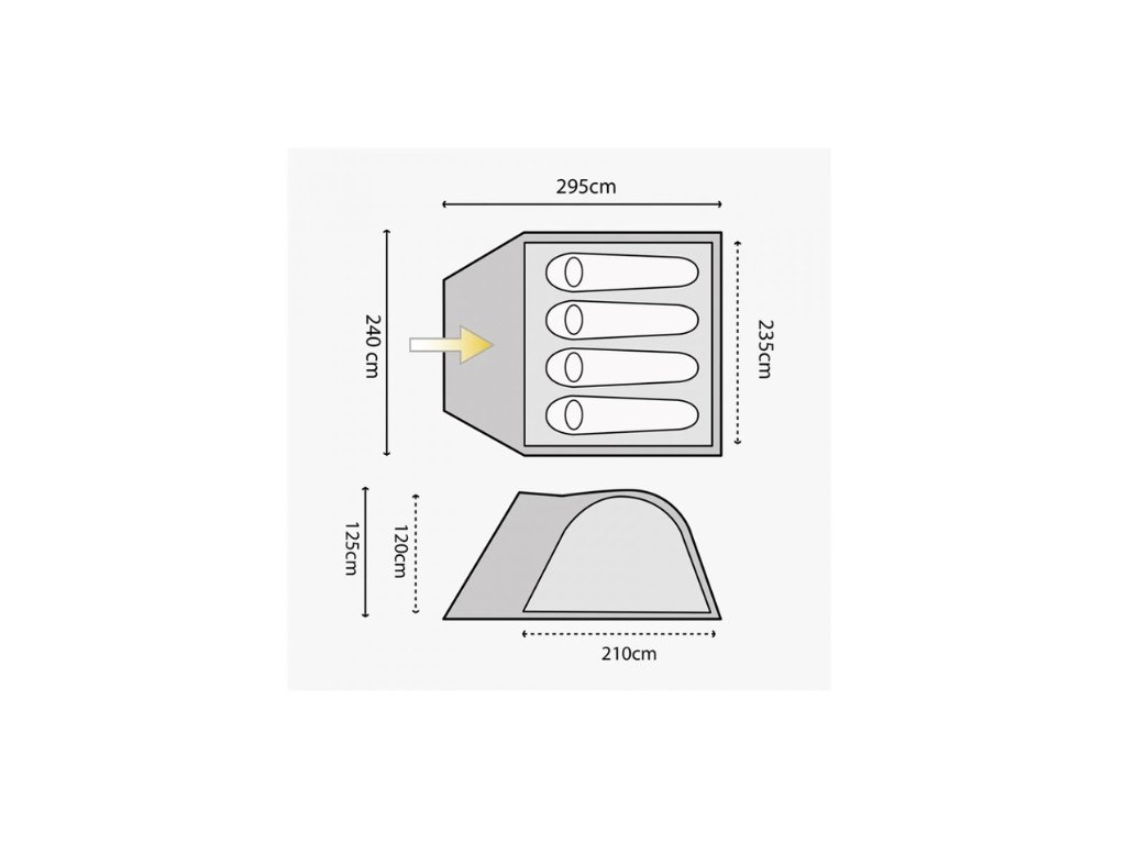 Dvouplášťový stan pro 4 osoby konstruovaný tak, aby byl pohodlný pro pobyt v kempu a zároveň aby se rychle a jednoduše stavěl a balil, byl lehký a nezabral mnoho místa v autě. Stan poskytuje dostatek místa pro osoby i zavazadla. Velký vchod a vnitřní výška 120 cm poskytuje dostatek pohodlí. Samonosná konstrukce zajišťuje dobrou stabilitu ve větru. Vhodný pro turistiku a kemp.