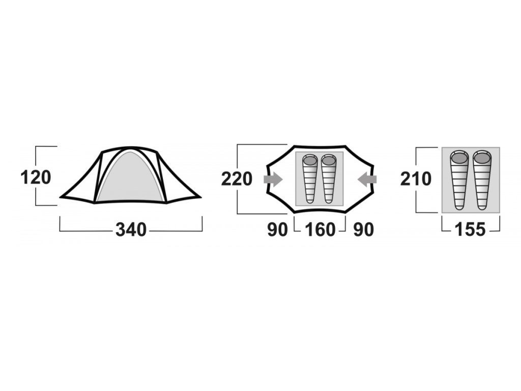 | Konstrukce | dvouplášťový samonosný stan s vnější konstrukcí |