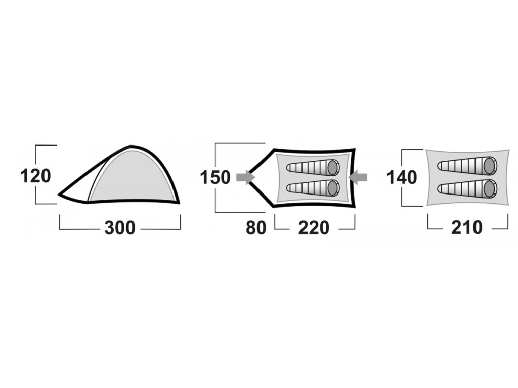 | Hmotnost | : min./celková 2,6 kg / 3,1kg Konstrukce: dvouplášťový samonosný stan s vnitřní konstrukcí |