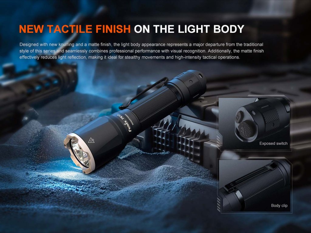 Výkonná taktická svítilnaFenix TK17nabízí špičkový světelný tok až3600 lumenů(ANSI) a dosvit až330 metrů. Svítilna je napájena jedním Li-ion akumulátorem typu21700 6000 mAh s USB-C konektorem afunkcí powerbanky, takže si v nouzi dobijete i telefon nebo jinou elektroniku. Akumulátor dodá energii až na60 hodin svícení. Velmi solidní a voděodolné provedení předurčuje tuto taktickou svítilnu pro drsné venkovní podmínky, pro profesionály, ozb. složky i pro myslivost. LED svítilna Fenix TK17 používá duální taktický spínač, který umožňuje rychlejší a spolehlivější ovládání v krizových situacích. Lze ji napříkladrychle zapnout přímo do stroboskopického režimunebo donejvyššího výkonu. Hlava svítilny je opatřena úd. ráfkem z nerezové oceli, který je navíc vybaven třemi wolframovými hroty. Proto lze svítilnu efektivně použít k proražení skla v krizových situacích či k sebeobraně.