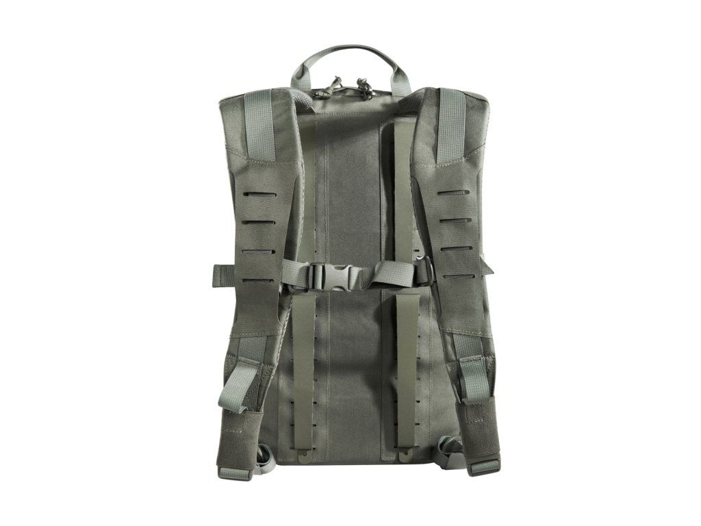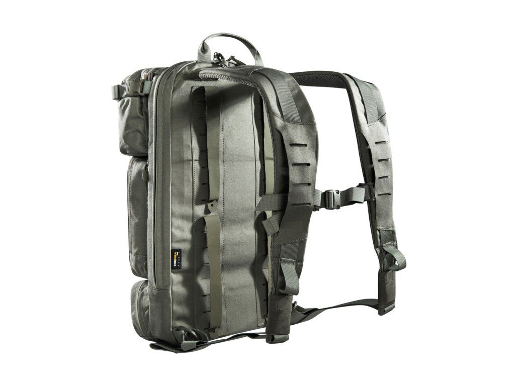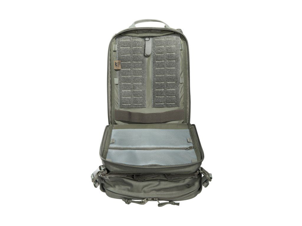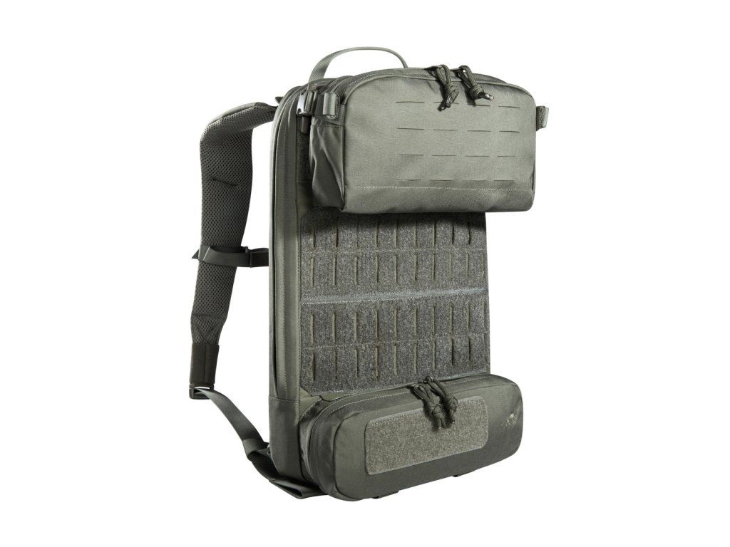 Materiály použité pro tento výpravný batoh jsou velmi lehké, díky čemuž se s ním velmi snadno manipuluje. Má plochý hlavní prostor, který je kompatibilní s hydratačním systémem, a zadní panel je opatřen suchým zipem MOLLE pro přizpůsobitelné uspořádání vaší výbavy. Horní přední kapsa batohu je odklápěcí, za kterou můžete připevnit držák na zásobníky (tři zásobníky). Obě střední přední kapsy jsou odnímatelné a za každým z nich se nachází suchý zip MOLLE. Na spodní přední kapsu lze připevnit pouzdro TT Tac Pouch 12 (položka 7862) nebo záložní pouzdro TT 2 SGL Mag Pouch M4 (položka 7811). Batoh má na zadní straně systém MOLLE, takže jej můžete integrovat do nosiče plátů. K připevnění k nosičům plátů můžete použít také adaptér.