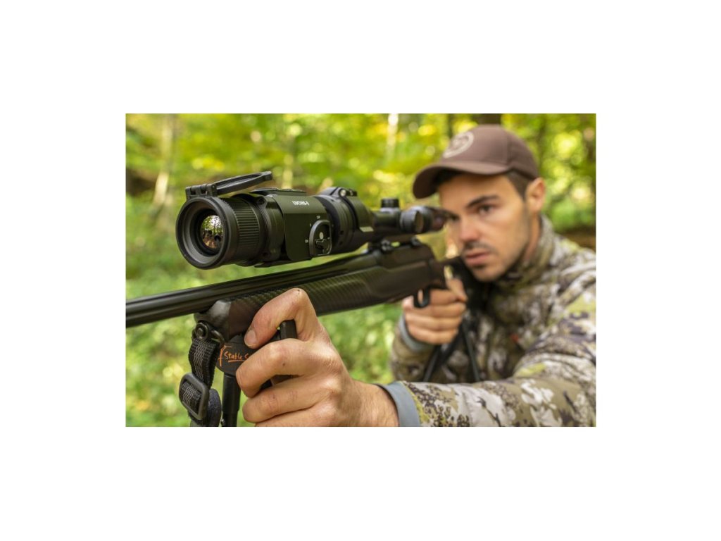 RYCHLOST A ODOLNOST Robustní a nárazuvzdorné hliníkové pouzdro – testováno dle požadavků na prémiové optiky Ochrana proti vodě a prachu v souladu s IP67 PŘIZPŮSOBITELNOST Vhodná pro pozorování a lov Vhodné pro použití s nadhánkovou optikou INTUTIVNOST Viditelný dotykový spínač, intuitivní 640×512 12µm VOx Objektiv 35 mm / f1,0 Zorné pole 22 x 17,6 m / 100 m Detekční dosah 1,750 m Optické zvětšení 1x (dostupný 2x přímý zoom) Frekvence 50 Hz NET4 5 Integrovaná baterie, až 9 hodin provozu Externí napájecí zdroj USB-C Bezdrátové připojení / paměť WiFi / 32 GB interní paměť Připojovací závit M43 x 0,75 Vodotěsný IP67 Provozní teplota -20°C až 50°C Rozměry 161 x 64 x 68 mm