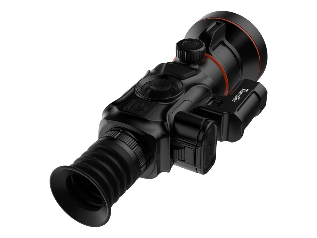Funkce optického zoomu spočívá ve dvou čočkách v jednom přístroji, díky nimž si můžete měnit šířku zorného pole podle vašich potřeb. Čočka s ohniskovou vzdáleností 20 mm s pevným optickým zvětšením 1,8x umožňuje detekci na 1000 metrů , zatímco čočka s ohniskovou vzdáleností 60 mm se zvětšením 5,5x umožňuje detekci až na 3000 metrů . Zařízení také disponuje AI poměrovým a laserovým dálkoměrem s dosahem až na 1000 metrů.