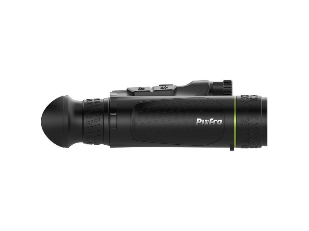 Pixfra Draco 4K se vyznačuje ergonomickým designem s lehkým tělem o hmotnosti kolem 600 gramů, což umožňuje snadné přenášení, pohodlné ovládání jednou rukou a jasný přehled o okolí v reálném čase – kdykoli a kdekoli.