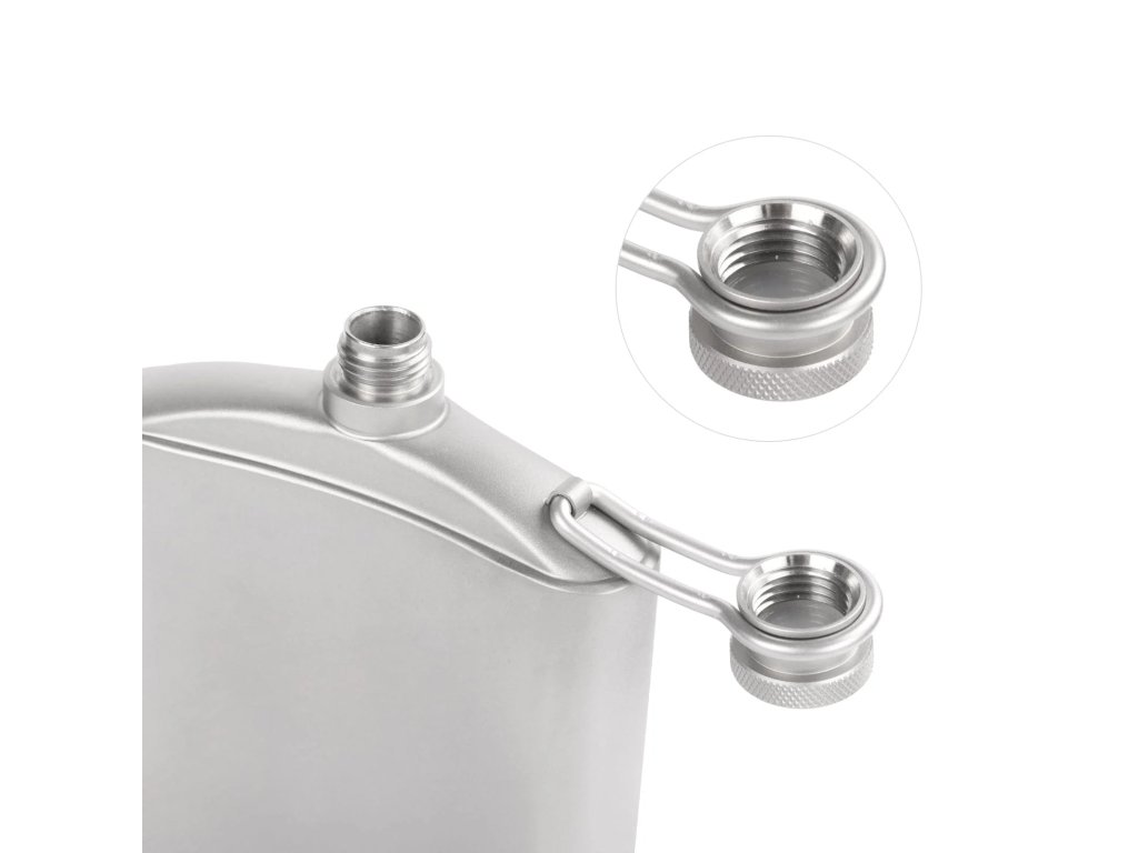 Ultralehká titanová placatka na „něco k zahřátí“ se skvěle hodí na výlety a pobyt v přírodě. Samotná láhev je doplněna nádherným pouzdrem z umělé kůže, které má úžasnou patinu. Jednoduchý, klasický tvar je časem prověřený a nepřekáží v kapse kalhot nebo bundy. Ploskáčka se vejde i pod víko batohu nebo přímo do víka. Bude tak snadno a rychle po ruce při výstupu nebo v kempu. Pro snadnou funkčnost tato titanová láhev používá praktický překlápěcí mechanismus víčka, které díky tomu nikdy neztratíte. Víčko je uvnitř opatřeno nepropustným těsněním z potravinářského silikonu. Díky tomuto provedení neriskujete, že skončí prémiový alkohol v kapse nebo v batohu. Součástí je praktický titanový trychtýř pro snadné naplnění placatky.