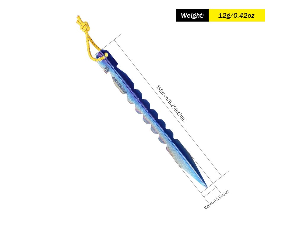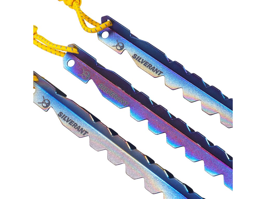 Sada 6 kusů odolných ultralight stanových kolíků SilverAnt z titanové slitiny váží pouhých 72 gramů. Skvělé lehounké kolíky pro vypnutí ponče, celty či ultralight stanu. Y-profil zaručuje vysokou životnost a odolnost vůči zdeformování. Použitý materiál je odolný vůči korozi.