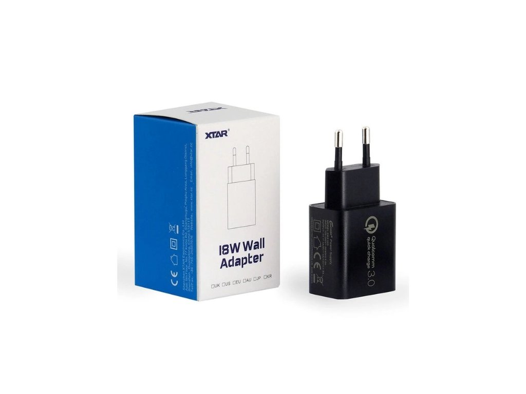 Tento adaptér je potřebný pro dosažení maximální rychlosti nabíjení s nabíječkami XTAR SC2, ST2, VC4S, PB2S, VC8, BC8. Kompatibilní is jinými nabíječkami, které používají protokol Quick Charge 3.0 (QC 3.0). Tento nabíjecí adaptér do el. sítě, automaticky rozpozná připojené zařízení a automaticky upraví hodnotu nabíjecího proudu 5V-3A, 9V-2A, 12V-1,5A 8W. S rychlým nabíjením QC3.0 USB výstupem 18W, umí rychle nabíjet i kompatibilní mobilní telefony a zařízení s integrovaným protokolem rychlého nabíjení QC3.0. Technologie QC 3.0, nabízí možnost nabít akumulátor, kompatibilního zařízení z 0 na 75% kapacity, za cca 30min! Tělo adaptéru je vyrobeno z materiálů, zpomalujících hoření a ohnivzdorných materiálů.