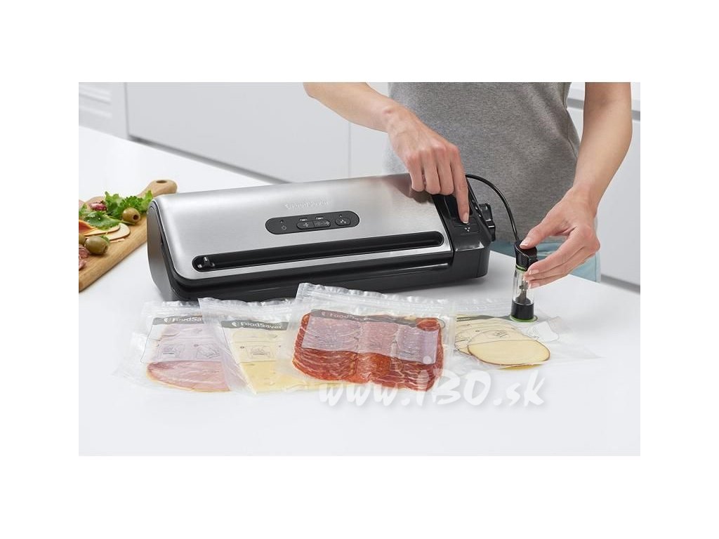 Udržujte své potraviny dlouho čerstvé a zabraňte tvorbě bakterií. Vakuované potraviny mají až několikanásobně delší dobu trvanlivosti než volně skladované potraviny. Proto nečekejte, až se vaše potraviny začnou kazit. Vakuová balička FoodSaver FFS017X je investice, která se vyplatí. Šetříte potravinami a v konečném důsledku šetříte i svými těžce vydělanými penězi. Vakuové baličky potravin FoodSaver Vám na Slovensko exkluzivně přináší IBO Myslivec. Už nikdy více žádné zkažené a zapáchající potraviny.