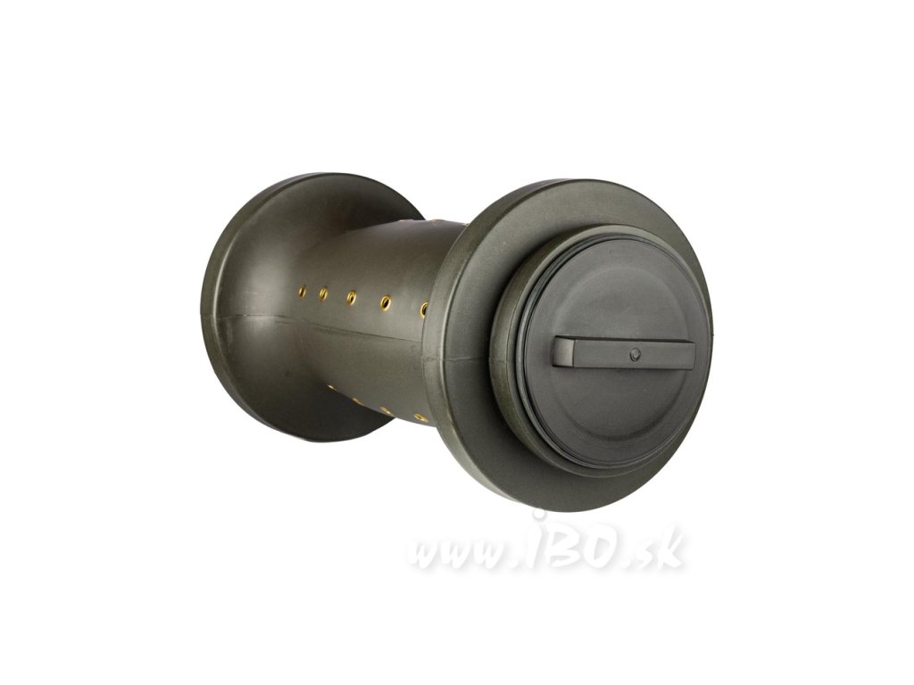 Kŕmny bubon 2.0 predstavuje spoľahlivého pomocníka na dlhotrvajúce prikrmovanie zveri. Jeho objem je úctyhodných 38 litrov, vďaka čomu doňho zmestíte veľké množstvo krmiva. Je vyrobený z kvalitného tvrdeného materiálu, ktorý 100% odoláva nárazom a úderom zveri. Nová generácia disponuje novým uzáverom, ktorý poskytuje jednoduchšie otváranie a zatváranie. Nájdete na ňom množstvo otvorov na sypanie krmiva, ktoré sú doplnené o mosadzné výstuže. Tie eliminujú vznik okusovania. V balení sa spolu s bubnom nachádza aj oceľové lano a tyč na ukotvenie.