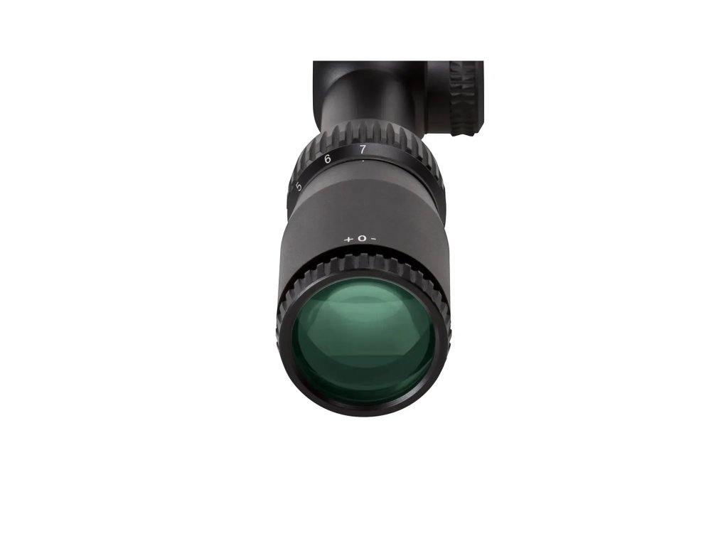 - Jedná se o model ve druhé fokální rovině (velikost kříže se nemění s nastaveným zvětšením, dálkoměrné prvky mají odpovídající velikost při zvětšení 7x)