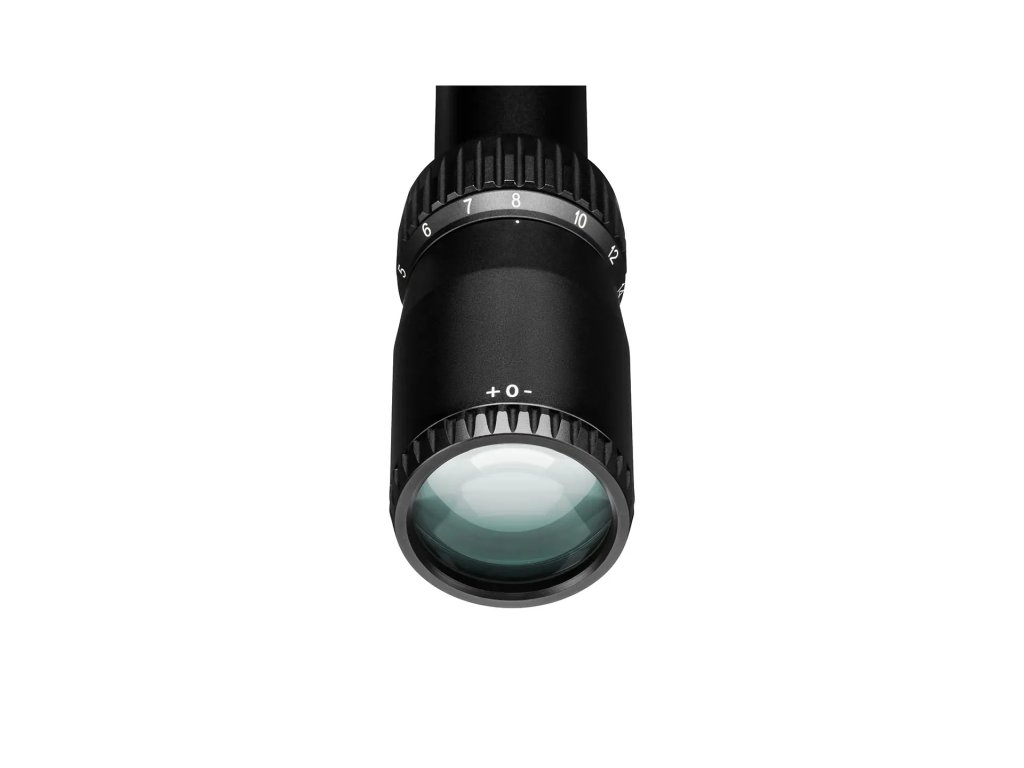 - Jedná se o model ve druhé fokální rovině (velikost kříže se nemění s nastaveným zvětšením, dálkoměrné prvky mají odpovídající velikost při maximálním zvětšení)