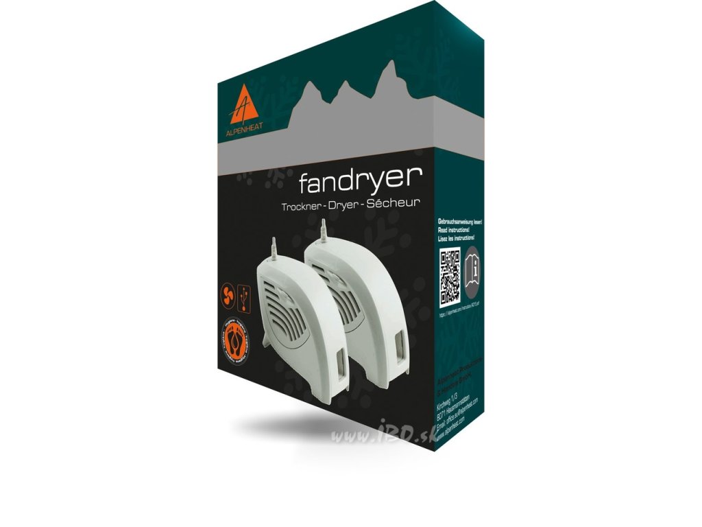 Vysoušeč bot FanDryer od společnosti ALPENHEAT je kompaktní a praktický vyhřívač typu USB. Snadno a přenosně jej lze připojit ke všem zařízením s výstupem USB. PC nebo power banka, nebo s adaptérem v každé zásuvce. Ventilátorová sušička přebírá okolní vzduch pro proces sušení a tím šetrně vysuší obuv a rukavice.