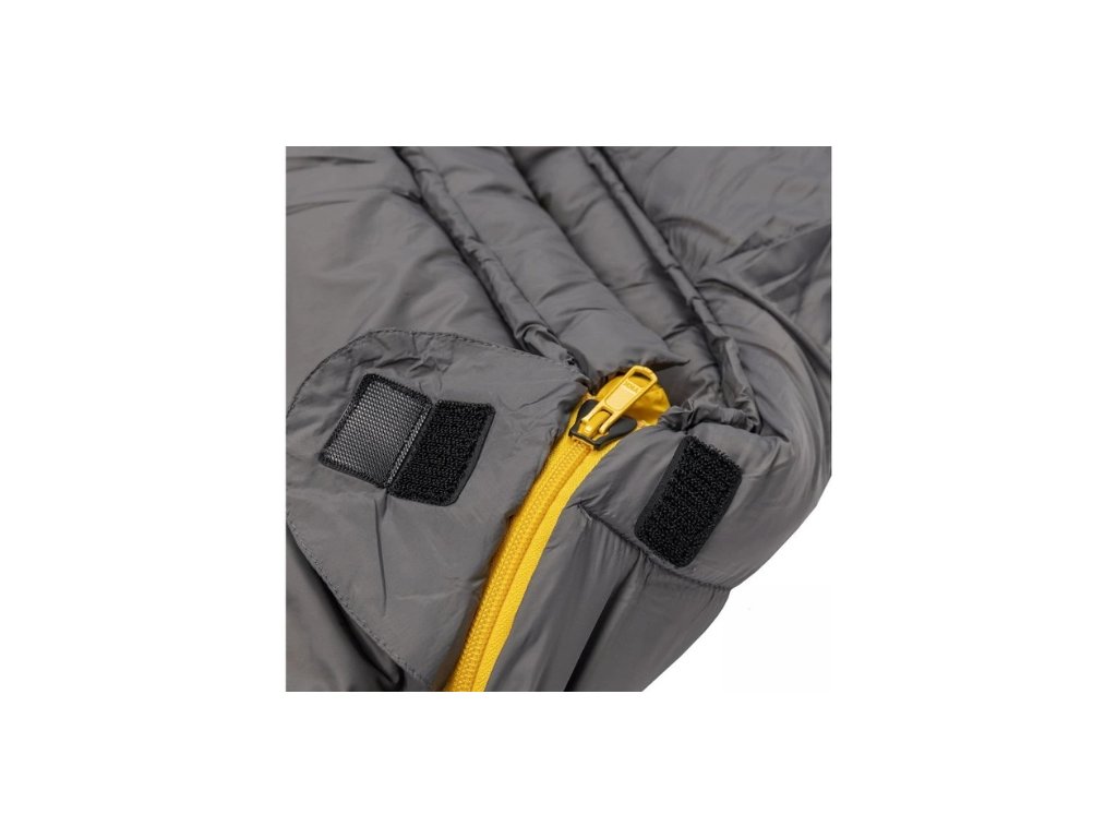 Zapínání: spacák je vybaven značkovým zipem YKK se speciálním plastovým chráničem, který zabraňuje vniknutí látky do jezdce a samovolnému rozepínání. U hlavy je zip ještě zajištěn chlopní na suchý zip, která zamezuje samovolnému otevření zipu.