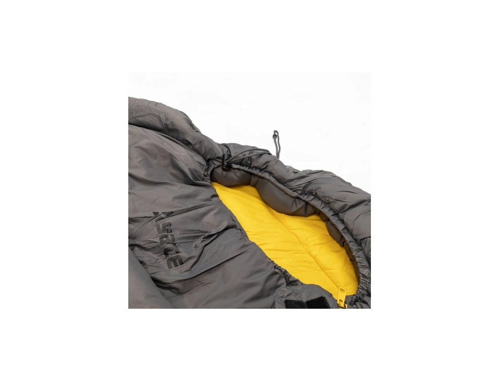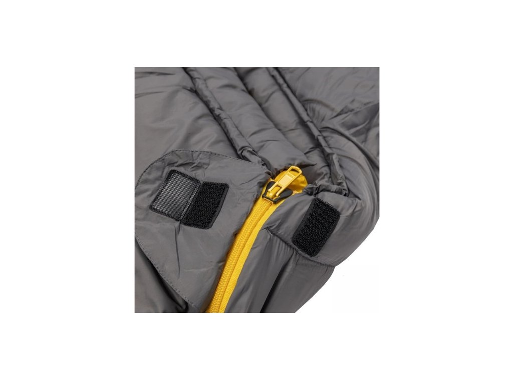 Zapínání: spacák je vybaven značkovým zipem YKK se speciálním plastovým chráničem, který zabraňuje vniknutí látky do jezdce a samovolnému rozepínání. U hlavy je zip ještě zajištěn chlopní na suchý zip, která zamezuje samovolnému otevření zipu.