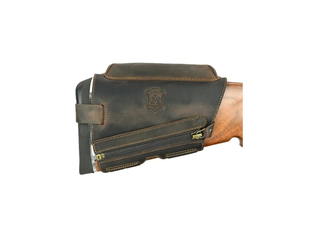 Kožený návlek na se zvýšenou lícnicí se zipem. Pro použití s optickými mířidly. Nastavitelnými pro každou velikost. Proti posunutí zajištěn koženým páskem provlečeným přes botku. Voděodolná úprava s efektem teletiny. Dostupný se třemi výškami lícnice.